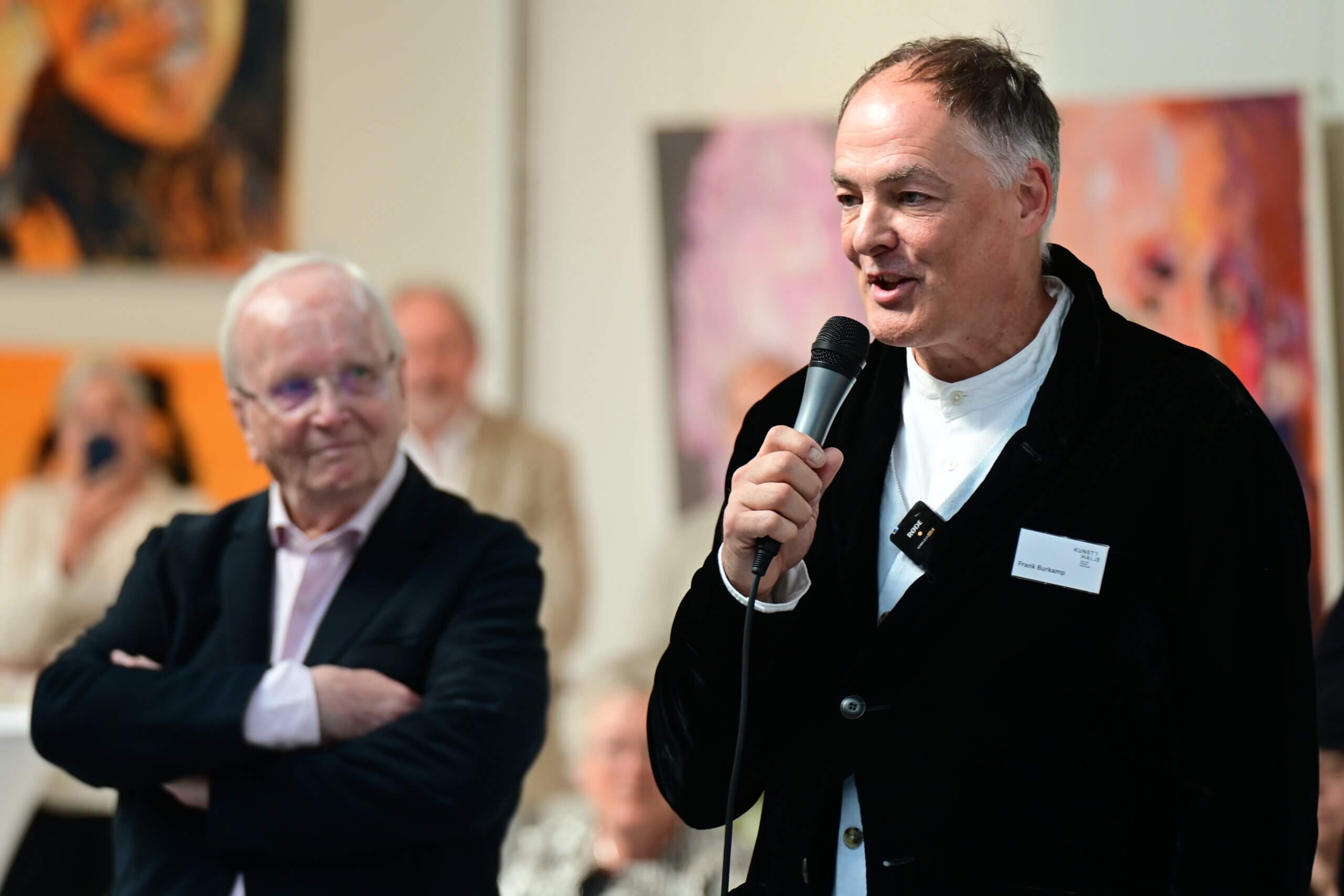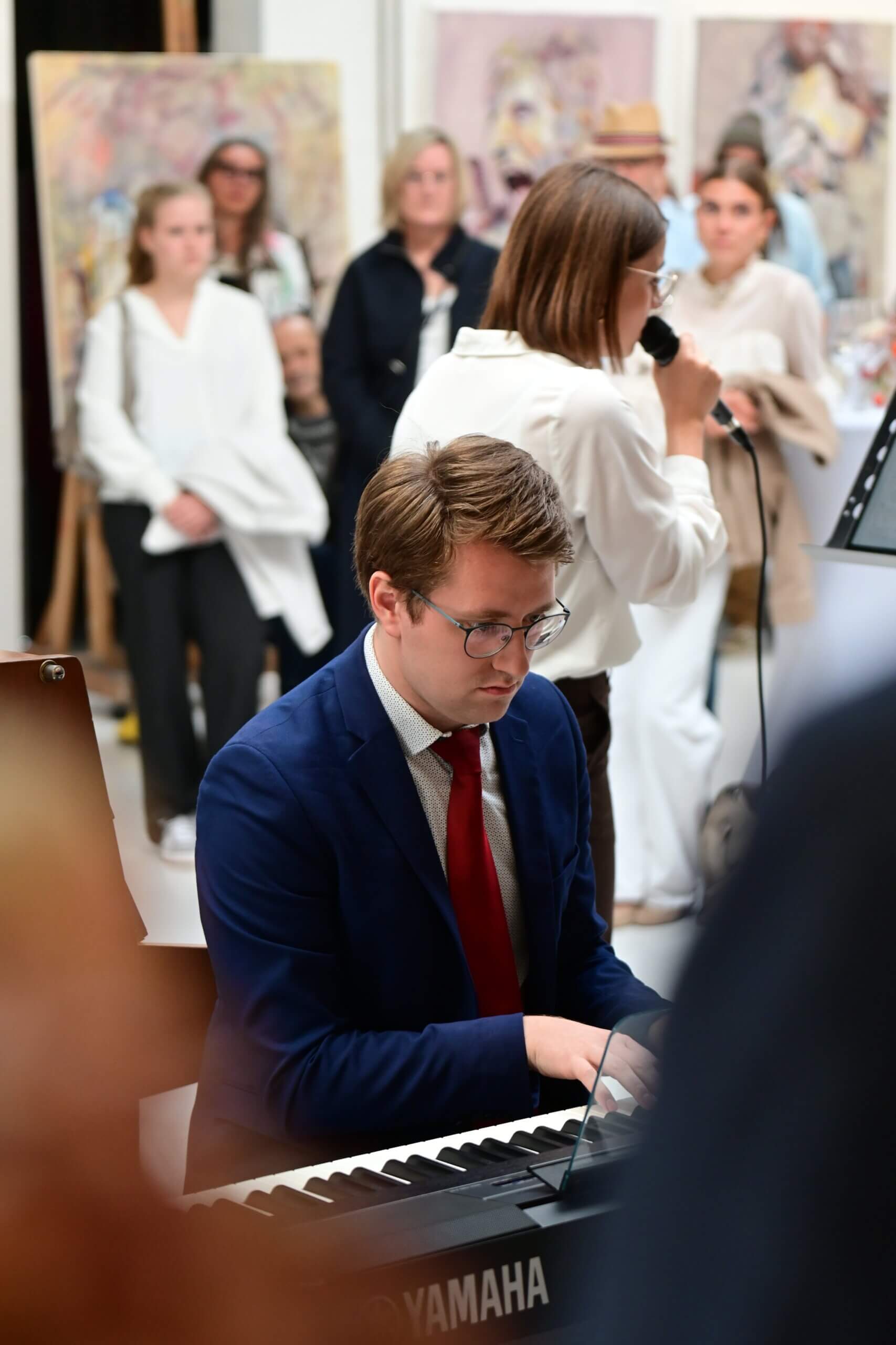Mit musikalischer Begleitung von Marie Bahlmann (Gesang), Lennart Böwering (Klavier) und Thomas Hain (Klavier), die feinfühlig auf die portraitierten Persönlichkeiten abgestimmt war, kulinarischen Kleinigkeiten die zu vertiefenden Gesprächen anregten, persönlichen Worten des Künstlers wurde die Werkserie, die Dichter*innen, Denker*innen, Künstler*innen und Musiker*innen in emotionaler Tiefe, technischer Ausdruckskraft und bildlicher Experimentierfreude sowie der ausstellende Künstler Jörg Bertrams zelebriert.
